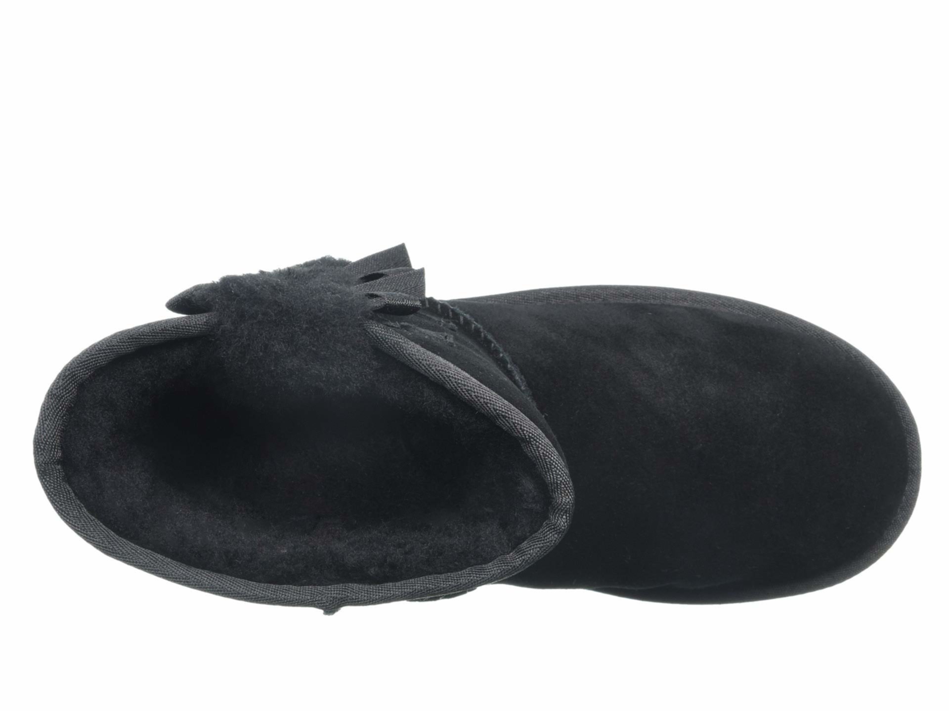 - Мягкий верх из замши, украшенный изящными бантиками и рядом пушистой, открытой овчины.