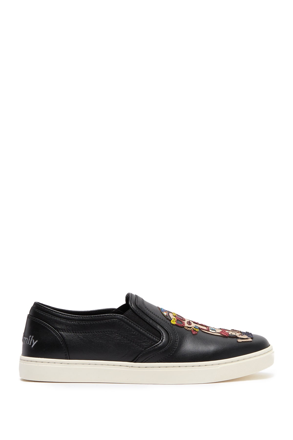 / Почувствуйте себя частью семьи DG, когда будете качать эти кожаные слипоны. Справочная таблица размеров для европейской конверсии. - Круглый носок - Кожаная конструкция - Деталь аппликации - Двойная боковая окантовка - Вставка - Белая подошва - Импорт